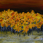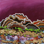 Mijn landschapsschilderijen bestaan uit diverse materialen waarmee ik experimenteer, zo ontstaat er gelaagdheid die weer een extra dimensie geeft.